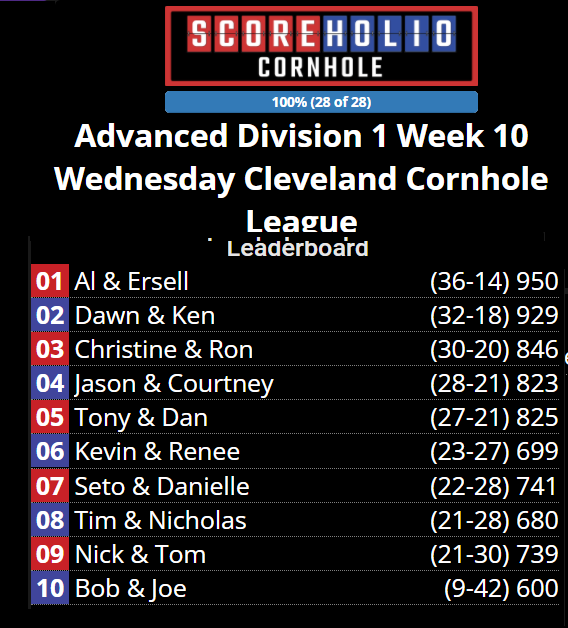 Dynasty Cornhole Dayton, OH Coy Paeltz Cincinnati, OH Kyle Rhodes Canton, OH John Ferraton. Youngstown,OH